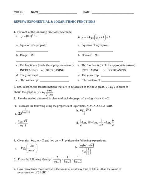 A Chapter 5 Exponential And Logarithmic Functions Worksheet is a great way to help students learn the concepts of exponential and logarithmic functions. The worksheet can provide students with a structured way to practice the concepts and learn problem-solving skills. Additionally, the worksheet can help students evaluate their understanding of the concepts. Finally, the worksheet can be used as a tool to help students prepare for tests and exams.